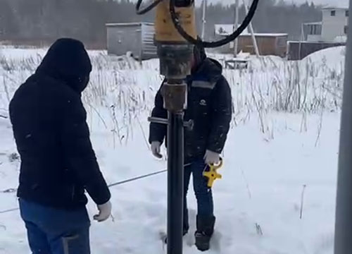 Место: Лен. область Задача: фундамент под дом из бруса Грунт: суглинок, камни Фундамент: закрутили мини-экскаватором 24 свай 108мм (4мм).