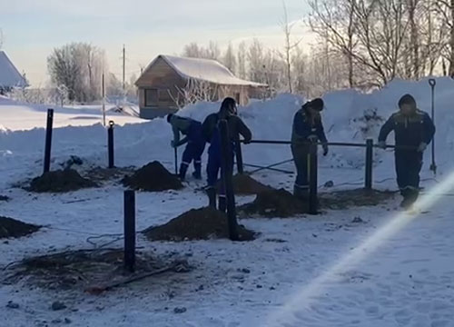 Место: Новая Ропша Задача: сделать фундамент под каркасный дом Грунт: суглинок Фундамент: закрутили вручную 28 свай 108*2500 (4мм).